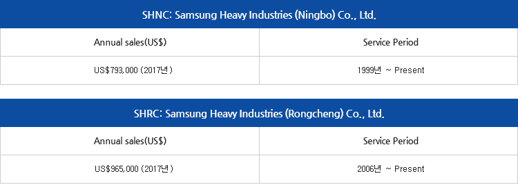 Facilities parts purchasing We supply equipment components and consumable materials used to build ship blocks Ningbo and Rongcheng Corporations of Samsung Heavy Industries.